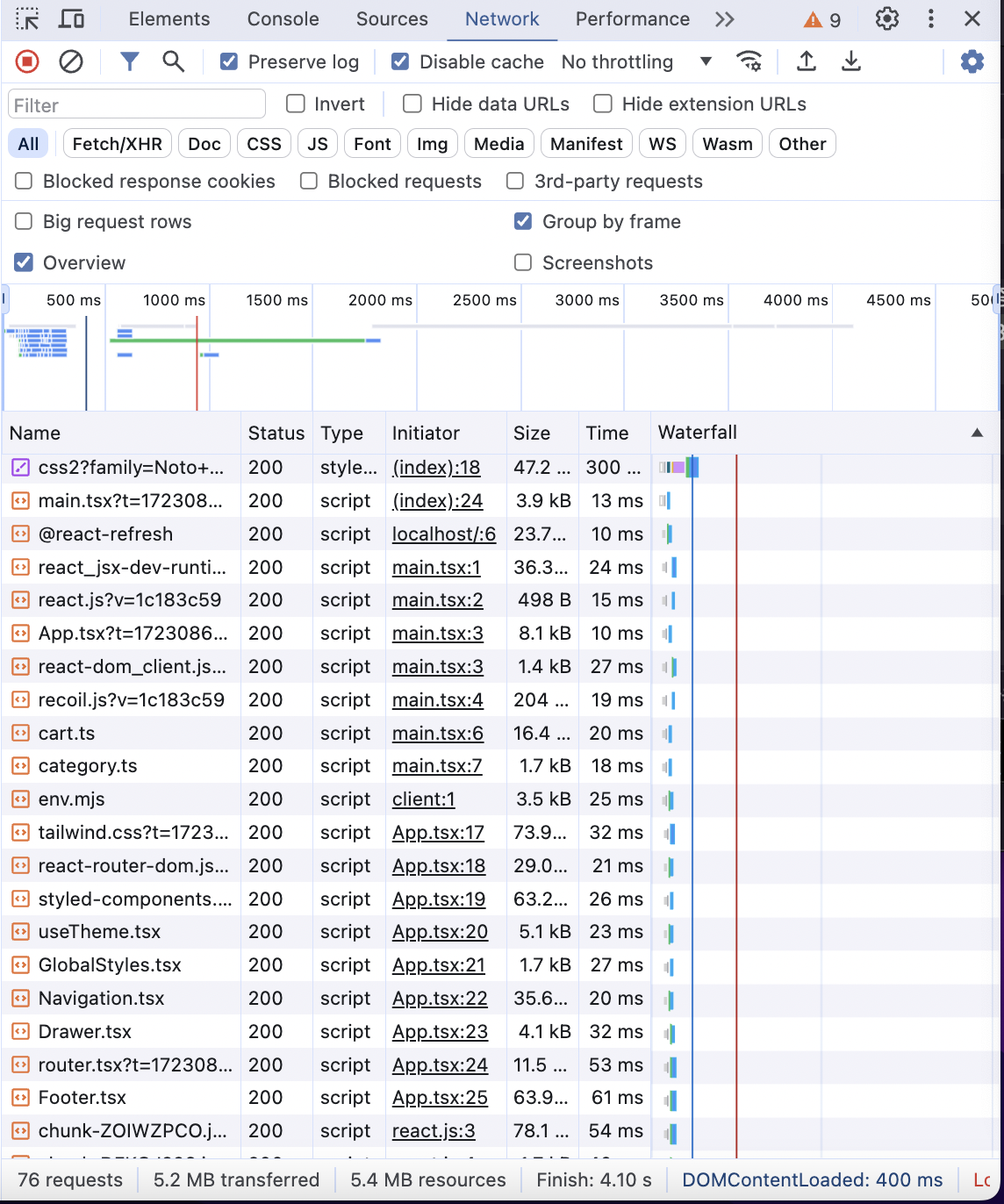 import된 변수, 함수, 클래스, 컴포넌트 등이 모두 처리되어야 함(상호 의존관계) => 첫 페이지의 로딩속도가 느려짐